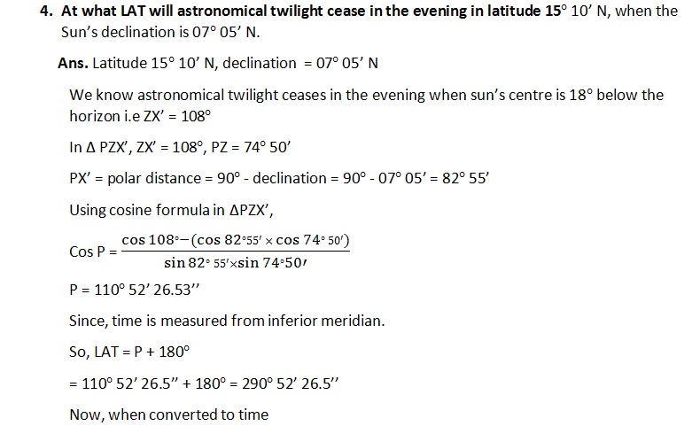 Chapter 12: Rising & Setting Of Celestial Bodies (Numericals Solution)