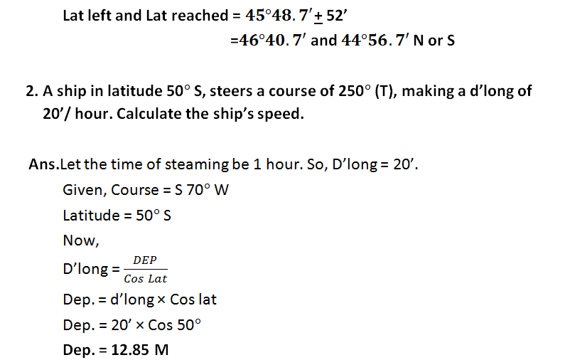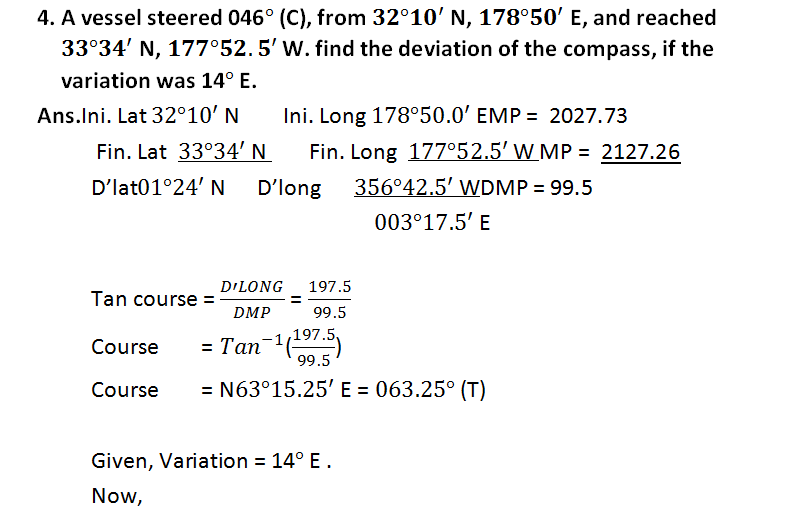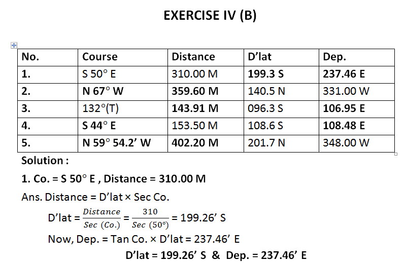 Here you will find all the solutions to the 4th chapter of Principal of navigation by Capt. T. Joseph and Capt. SSS Rewari.