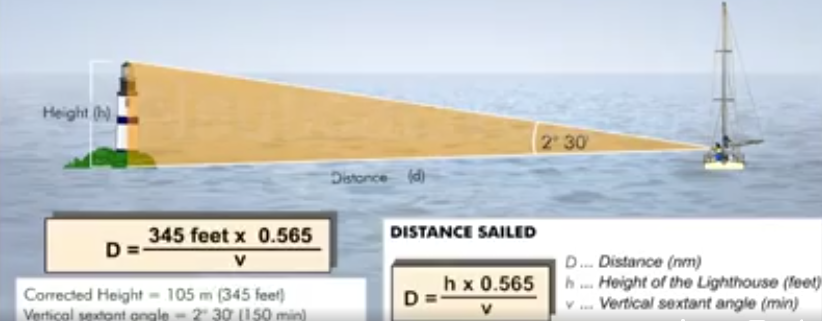 Because the height of the lighthouse is known and the angle is measured, your distance from it can be calculated.