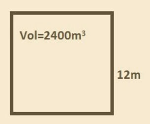 So, Area = (volume / depth) = (2400/12) =200m2