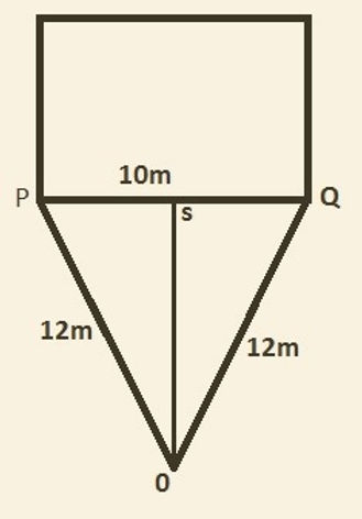 So, SR = 10.9m So area of the triangle = 1/2 (10×10.9) =54.5m2