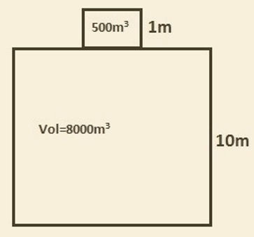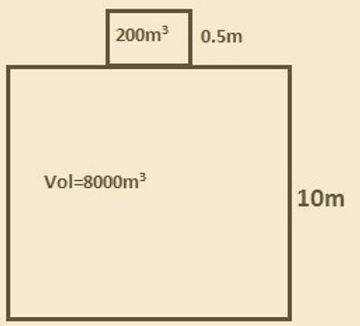 The depth of tank = 10m Height of the trunkway = 1m Volume of the tank alone =8000m3 Volume of the trunkway = 500m3 The mass of the oil =5320 t RD =0.7